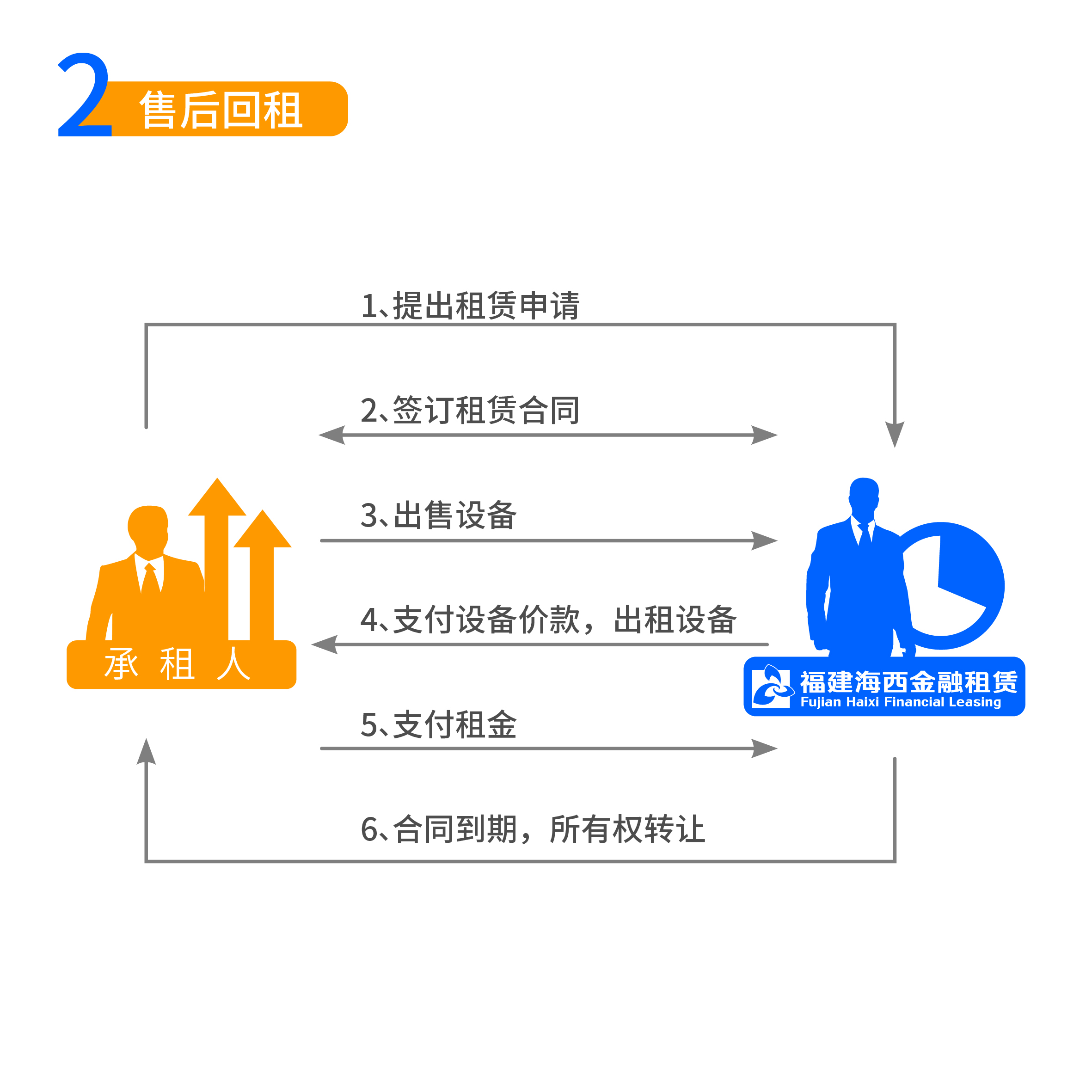 產(chǎn)品定義:承租人將自有固定資產(chǎn)出售給海西金租,再向海西金租租回使用 , 并按期支付租金的業(yè)務(wù)形式 , 租賃期滿資產(chǎn)歸承租人所有。